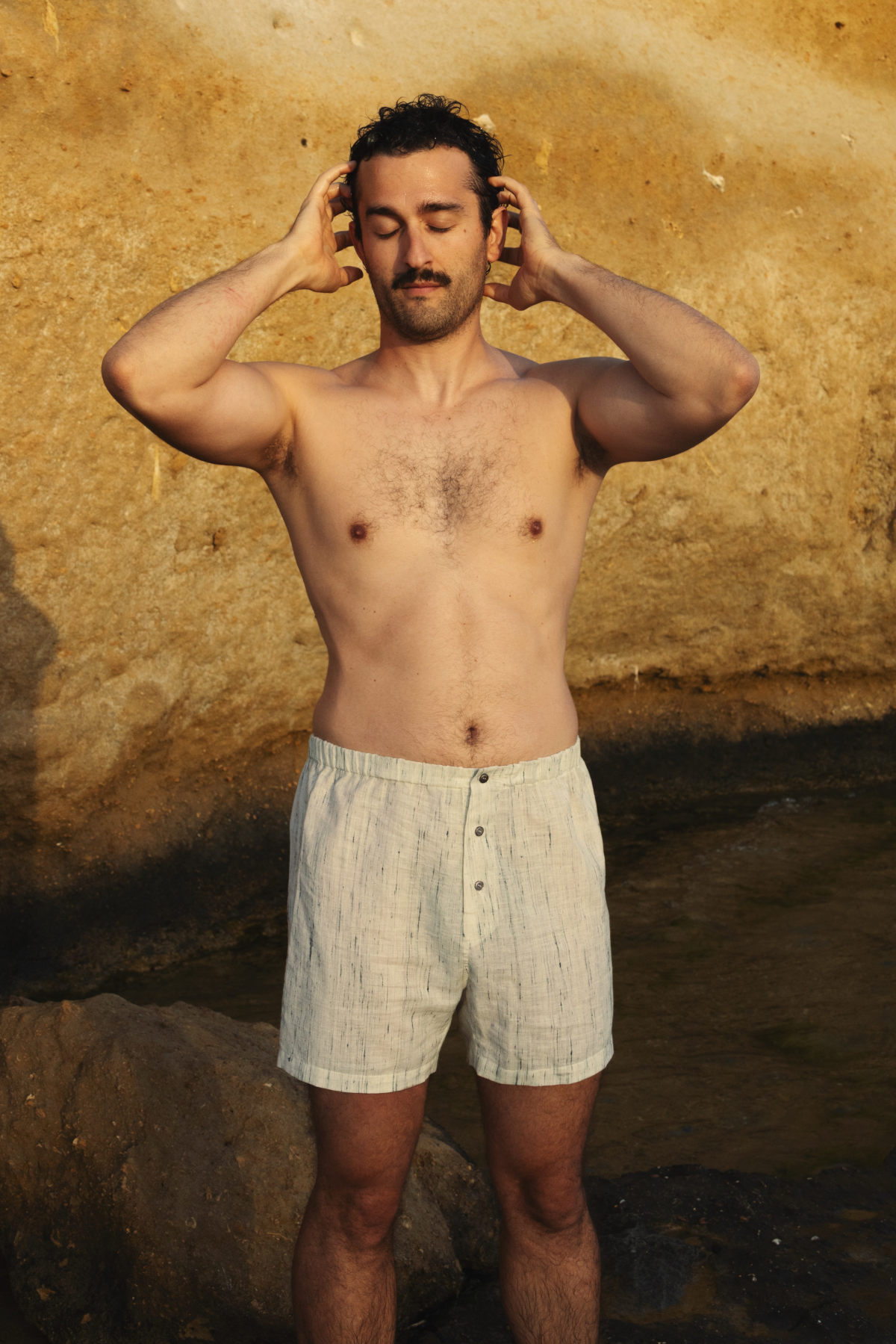 With these boxer shorts we have played with four contrasting fabrics, ranging from an extra-soft, lightweight cotton hand-spun and hand-woven by an artisan in Bengal to a rustic and luxurious antique pure hemp sourced in Italy.