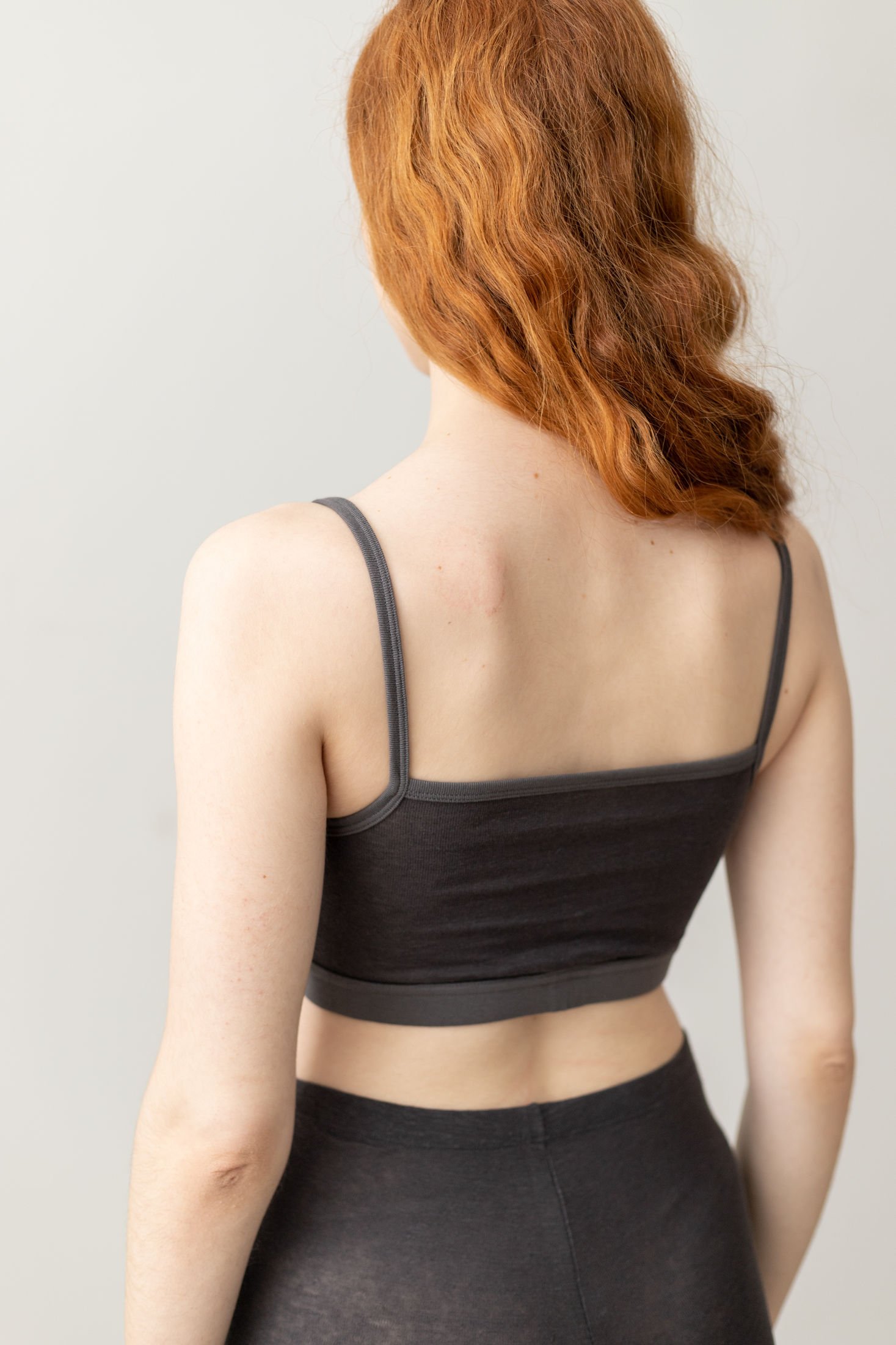 > This crop top in a natural material without underwire will give you freedom of movement and a feeling of well-being.