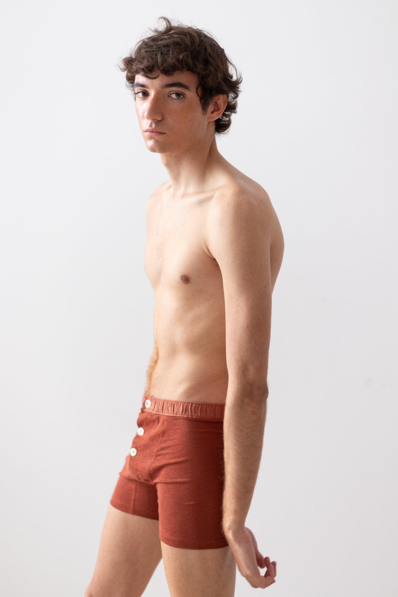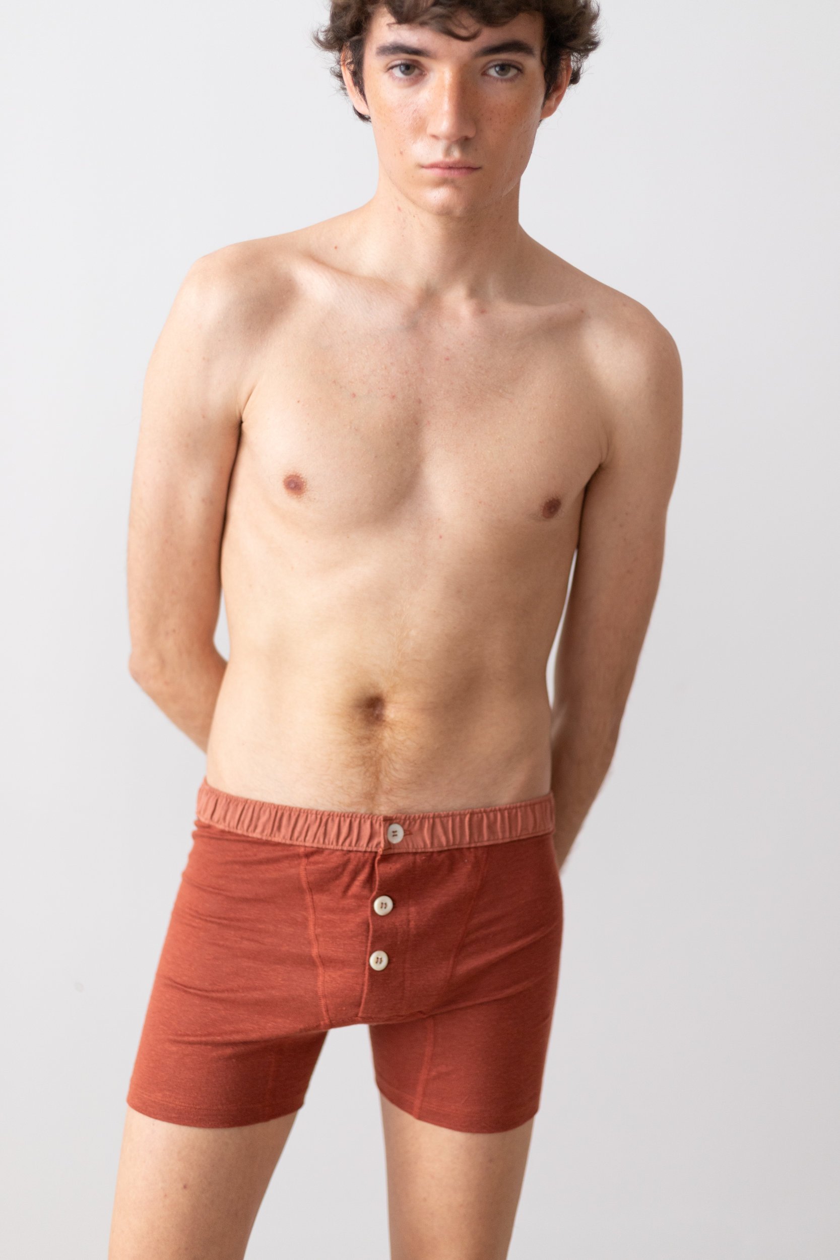 Boxer shorts with a three-button opening. Designed for any gender and inspired by men’s Long Johns. This gives a good fit with an androgynous look, more relaxed than our “Boxer Briefs Cervin”.