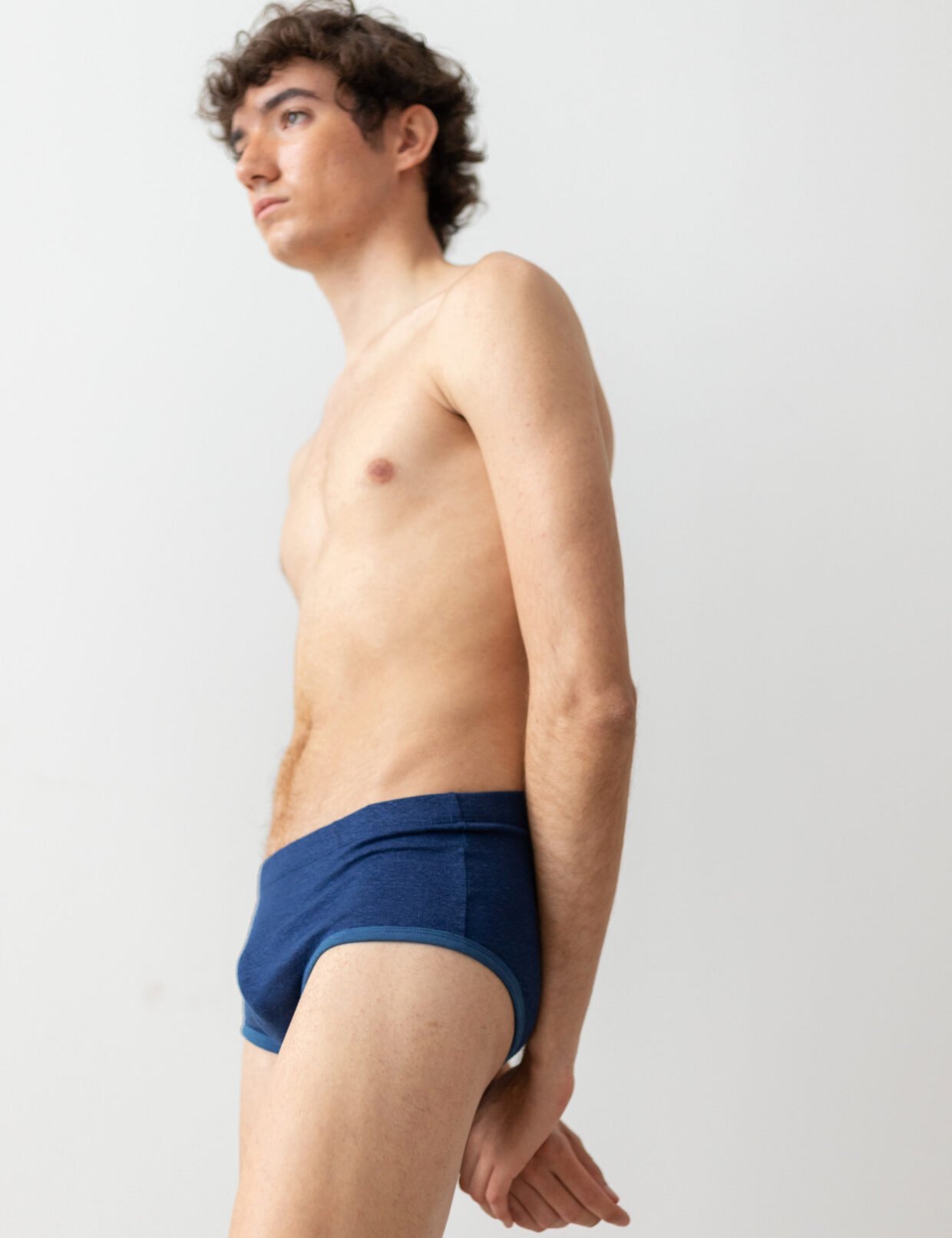 Indigo / Ecru 300 gsm fabric mixing a thread dyed with indigo and a thread in ecru colour. Made in France in a factory using old looms. Composition 100% hemp.