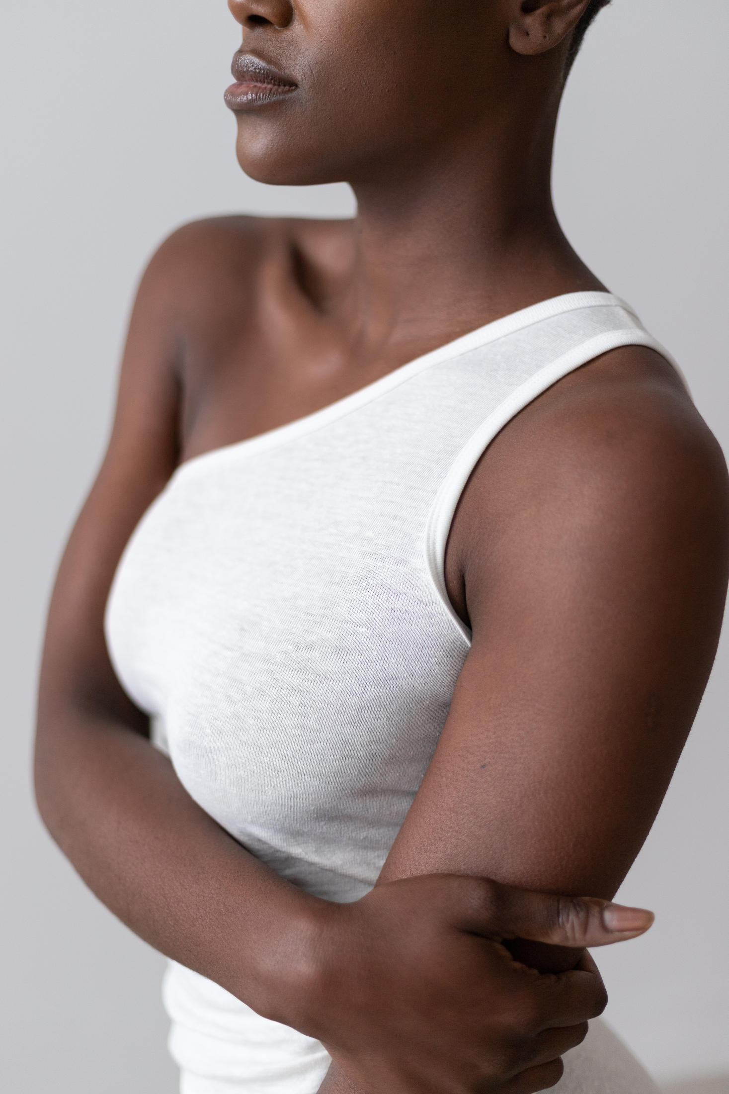 Asymmetrical top to be worn during warmer seasons or for low impact sports such as yoga.