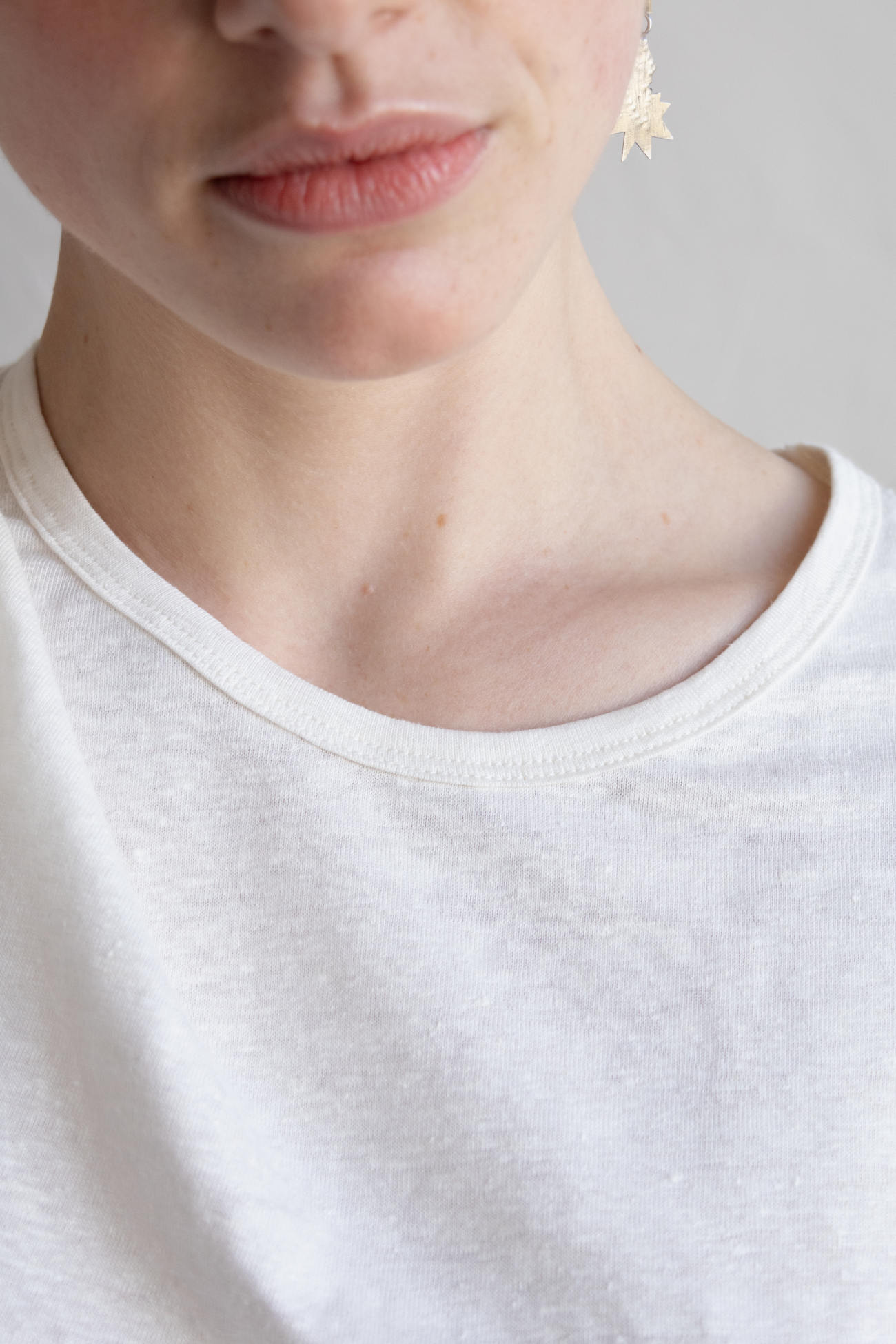 We’ve designed this short-sleeved t-shirt to specifically fit women. This t-shirt has a straight cut and a round neckline that’s slightly more open than our men’s t-shirt. We have made the sleeves longer to cover a little more of the upper arm. Made with linen grown, spun and knitted in Europe.