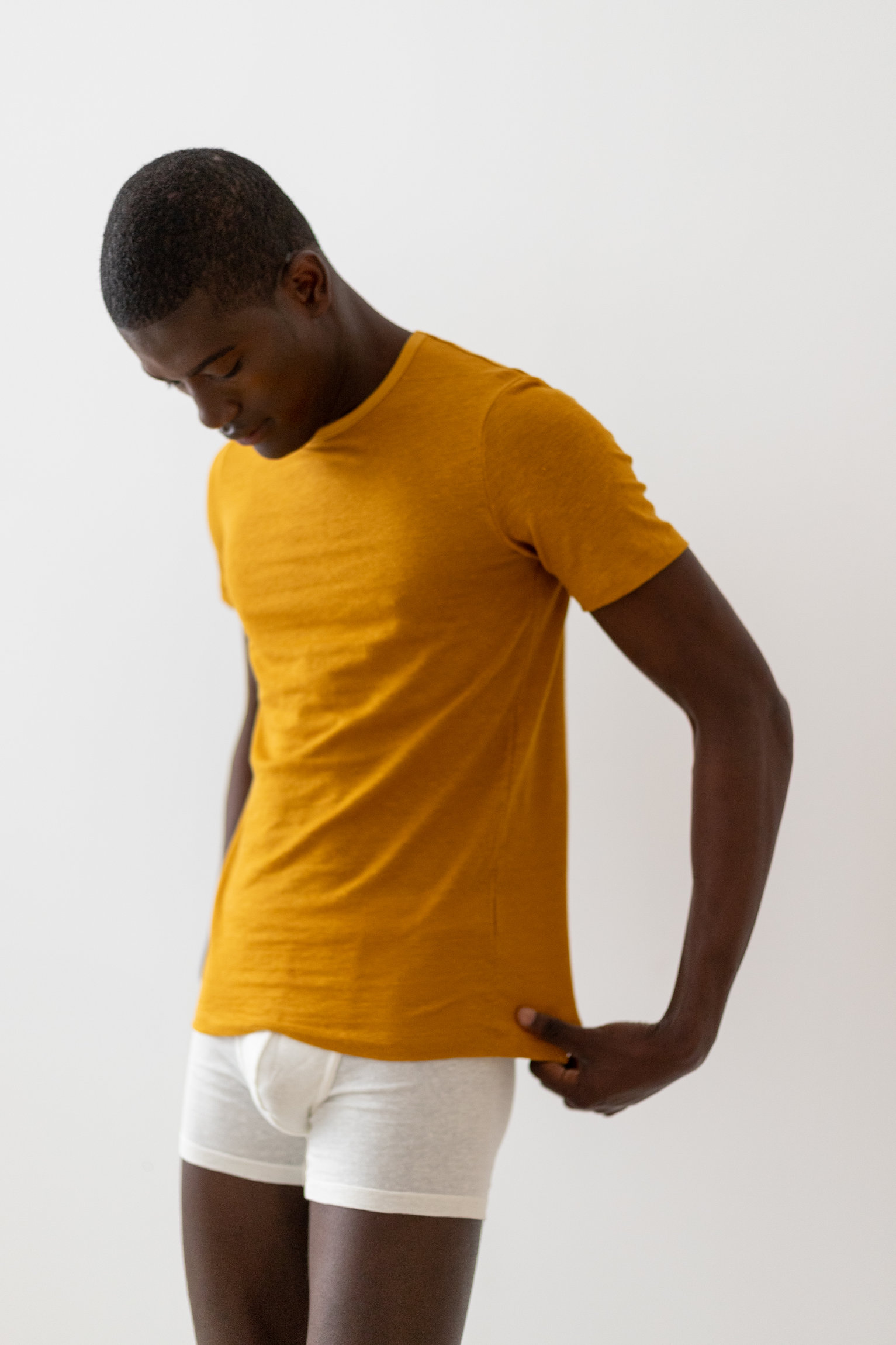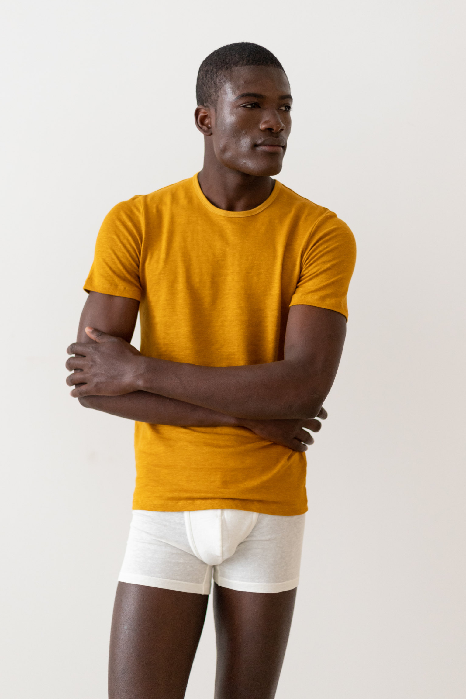 Short-sleeved classic t-shirt with a crew neck and a slightly tight fit. Please choose your usual size (see size chart) if you wish to wear the t-shirt as underwear or close to the skin, and the size above if you want a more relaxed fit.